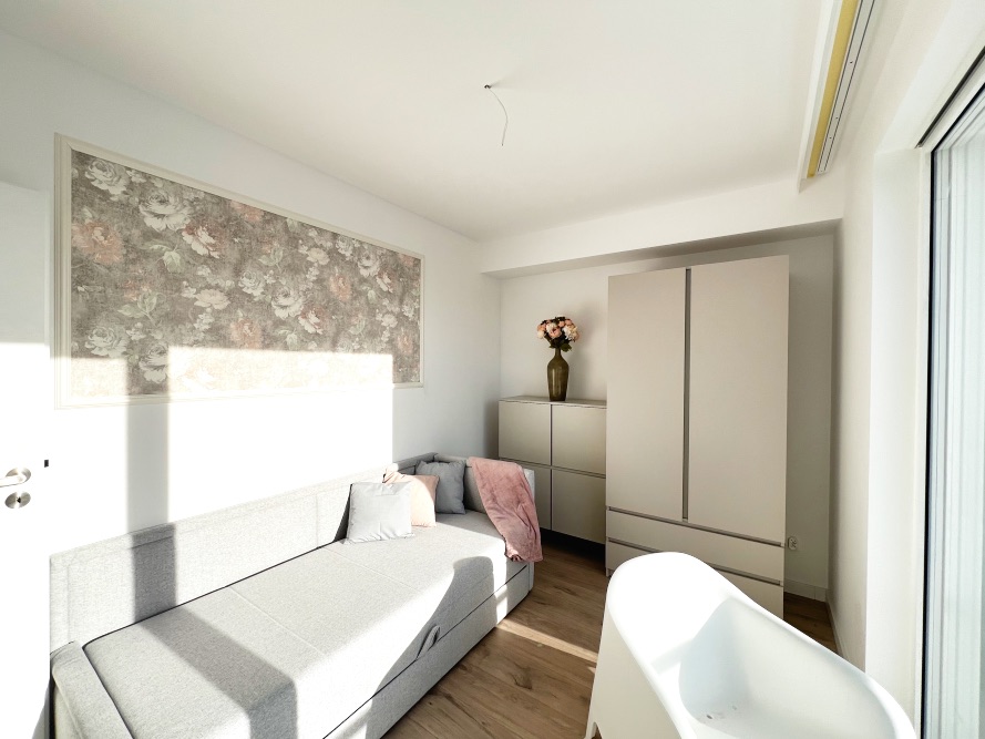 Die Wohnung verfügt über zwei gut geschnittene Schlafzimmer, die sich ideal als Schlafzimmer, Gästezimmer oder Homeoffice eignen. Das Badezimmer ist modern ausgestattet mit Dusche sowie einem elektrischen Warmwasserboiler. Für zusätzlichen Wohnkomfort sorgt eine Fußbodenheizung, die bequem per App steuerbar ist und ein angenehmes Raumklima zu jeder Jahreszeit ermöglicht.