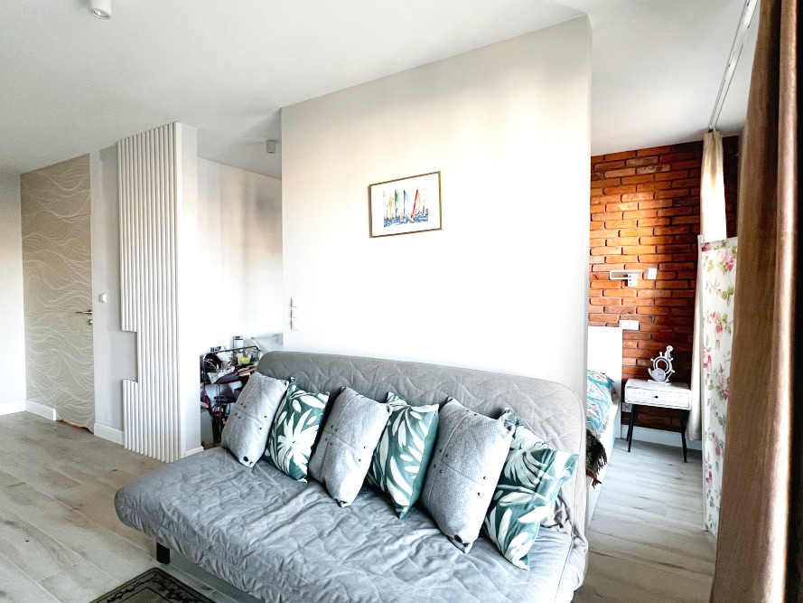 Ein Balkon mit westlicher Ausrichtung und einer Fläche von ca. 4,20 m² lädt zu sonnigen Nachmittagen und entspannten Abenden ein. Das Zentrum von Świnoujście mit zahlreichen Einkaufsmöglichkeiten sowie die moderne Corso Shopping Center befinden sich in unmittelbarer Nähe.