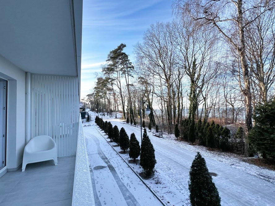 Vom Balkon genießen Sie in den Wintermonaten einen Blick auf die Ostsee. Zu jeder Jahreszeit lädt er zum Entspannen ein, begleitet vom beruhigenden Rauschen der Wellen und der frischen Meeresluft.