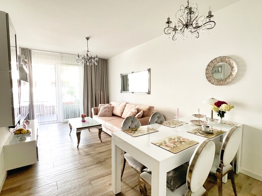 Diese geschmackvoll eingerichtete 2-Zimmer-Wohnung befindet sich in der exklusiven Platinum-Anlage in Rewal, direkt am Strandzugang zum feinsandigen Ostseestrand. Von Herbst bis Frühling genießen Sie einen traumhaften Meerblick. Die elegante Einrichtung in dezenten Rosatönen schafft ein stilvolles und behagliches Ambiente.
